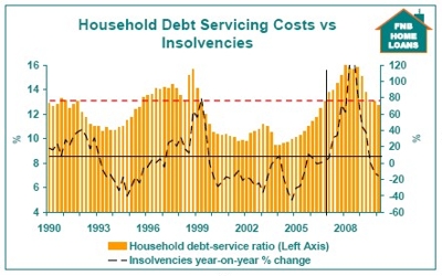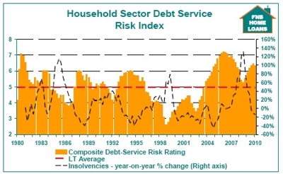 Are “tight” bank credit criteria appropriate? Perhaps more so than some would think, with the household sector’s vulnerability remaining highHousehold sector credit numbers for the month of May showed no improvement in growth from the previous month, remaining unchanged year-on-year at 3.8%. Such a slow pace of credit growth often gives rise to calls on banks, especially in credit-driven industries such as the property sector, to relax lending criteria further to facilitate stronger borrowing growth, which simplistically viewed would be the way to get the residential property market “back on track” (at least for a while). However, such views would be just that – simplistic, and lending institutions currently have a lot to think about, or should have at least. The reality is that recent household sector data point to an environment that can still be termed “high risk”, and this is probably no time for “heroes”. We could probably learn some valuable lessons from the recent US financial crisis. When the United States Federal Reserve cut its Fed Funds Target rate to 1% in its previous interest rate down-cycle, starting from around the 2001 US recession, it managed to breathe life back into an ailing economy, reportedly aided by more cheap money also flowing in from high-savings eastern economies to buy up debt instruments of dubious quality. However, the Fed had not reduced the many risks to the US economy that come from having high indebtedness levels. To the contrary, relaxed monetary policy and lending criteria helped already-high debt levels still higher, setting the country up for the ultimate crisis at a future stage when interest rates once again rose (as they always ultimately do), and an external shock in the form of the 2008 commodity price spike hit the economy. Their residential property market took a hammering, and the greatest financial crisis since the Great Depression took place. In South Africa, we managed to avoid a financial crisis, but our own household sector’s indebtedness level remains far from healthy. This is despite insolvencies being on the decline, home loans banks arrears situations having improved, property demand being higher than a year and a half ago, and both the economy and household disposable income once again growing positively in real terms. Despite such abovementioned improvements, the recovery to date can be classified as a “high risk” one, and important is not to fall into the US trap and bluff oneself into believing that all is well. Rather, one should examine the reasons for any improvements in household credit quality. The reality is that the main driver of this improvement has been a reduction of interest rates to a new low last seen a few decades ago, and NOT through a major improvement in terms of a reduction in indebtedness. The latter is what the country needs more of, because as quickly as interest rates can decline, so they can and will rise again at some stage in future, and if they were to unexpectedly rise in the near term, the still-high level of household sector indebtedness (by our own historic standards at least) would mean that bad debt levels would probably quickly rise back to “unacceptably” high levels. The SARB Quarterly Bulletin showed the household debt-to-disposable income ratio declining to 79.4% in the 1st quarter of 2010, assisted by a slow rate of household credit growth and recovering disposable income growth that now outstrips credit growth, but far more of this is required. The road back to lower levels of household sector vulnerability will be a long and slow one, which should not be built predominantly on interest rate cuts and more relaxed lending criteria. Rather, it will require a few years of household credit growth which is substantially slower than household disposable income growth, so as to reduce the debt-to-disposable income ratio significantly. This will further reduce the all-important debt-service ratio (the cost of servicing the household sector interest rate hikes without “severe pain”. At present, we’re not there yet, and we shouldn’t fool ourselves. So are home lending banks’ credit criteria too strict, and killing the market? That’s always a tough one to answer. Certainly they’re a lot stricter than 4-5 years ago at the height of the boom. But then with a currently far higher household indebtedness level than back in the boom years, it is likely that even should criteria hypothetically be as loose as they were back then, less households would still be in a strong enough financial position to qualify for home loans. In addition, the high level of indebtedness makes the household sector far more vulnerable to economic shocks or interest rate hikes at present, compared with back in the boom times, which in effect leaves the housing market highly vulnerable to shocks, and this should keep lenders vigilant. Therefore, relatively cautious lending criteria, and slow household credit growth (including slow residential mortgage growth) leading to further decline in the household debt-to-disposable income ratio over the next few years, should probably be viewed in a positive light for the time being. Household sector debt-service risk declining, but still remains at high levelsData releases in recent days indicate that the level of risk to the household sector’s ability to service its debt in future may have started to make progress in terms of a reduction, albeit slow, towards lower levels. However, this level of “debt-service risk” remains high. Our Household Sector Debt Service Risk Index declined slightly in the 1st quarter, from 6.5 previous to 6.4.