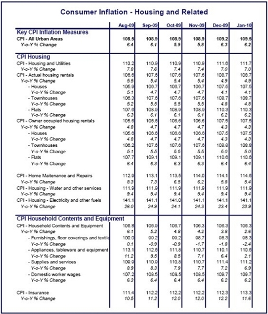Keeping the overall housing and utilities index from skyrocketing out of control was a very weak rental market, as tenants feel the financial stress from the recent recession as much as home-owners. As a result, the actual rental sub-index inflated by a mere 4.9%, while owners’ equivalent rental (derived from actual rentals but with different sub-weightings) also inflated by a tame rate of 4.3%. THE OUTLOOK The situation looks unlikely to change over the next few years, with the housing CPI remaining the “problem child”. Firstly, one should expect that at some point we may see some recovery in the rental market, causing the heavily-weighted rental indices to contribute more to the overall inflation rate. Secondly, NERSA has announced an electricity hike of 24.8% for 2010, with similar hikes to come in the next few years. In addition, water and sewage infrastructure is also under increasing pressure, and I would expect the utilities providing this infrastructure, along with financially pressed municipalities, to be encouraged by Eskom’s success in passing the costs on to the consumer, and it would come as little surprise if we saw some future acceleration in the inflation rate for the “water and other services” sub-index too. In short, therefore, although the CPI for housing’s inflation rate stands above the 6% target limit at 7%, we are of the belief that this may still represent something of a low point, given the current rental market weakness, and that a higher housing-related inflation rate is likely to be forthcoming later in 2010. This has the obvious implications for overall CPI. It partly drives the Firstrand view is that overall CPI inflation will stickily remain in the upper half of the CPI 3-6% target range, and that there thus exists little scope if any for further interest rate reduction. CONSIDERATIONS FOR HOME BUYERS With interest rates believed to be at or near to the bottom of the cycle, prospective home buyers would obviously do well to do interest rate scenario planning, asking the question “what if interest rates were to rise by the usual 4-5 percentage points? Could I still afford the bond repayment?” If not, perhaps look to buy cheaper. But the affordability issue now clearly extends far beyond merely the cost of servicing a bond, to the issue of these sharply escalating costs related to housing. Assessment rates and utilities tariffs to homes are largely unavoidable, and with all these entities being monopolies, and their charges being compulsory, the consumer has limited alternative. Besides electricity and water saving measures, the only alternative is to buy a smaller home (to reduce operating costs) or cheaper house (to reduce assessment rates). Prospective home buyers would do well to do the scenario planning in the area of rates and tariffs too, therefore, planning their purchase on the assumption that the current rates and tariffs paid on the targeted property will probably rise dramatically in the next few years. A NOTE ON THE LONG TERM IMPLICATIONS FOR RESIDENTIAL PROPERTY These property-related “rates and tariffs” increases have a number of potential impact points for homeowners as well as some of their service providers. Firstly, the obvious way of countering home operating cost increases is to buy a smaller home on a smaller stand, with less electricity and water-consuming luxuries such as a large garden, swimming pool and domestic workers’ quarters. Secondly, and something that goes hand in hand with buying a smaller and more manageable home, is to jettison certain services such as domestic home and garden staff. This provides significant policy challenges to government, as the domestic worker sector has been an important employer of less skilled people. Declining average size of stand and of home, and resultant diminishing use of domestic workers by the average middle class suburbanite, has arguably been a long term gradual trend taking place for a few decades. This has been due to increasing land scarcity around major metros, an ongoing trend. But adding sharp rapid increases in housing-related services costs to the mix can speed up the trend in increasing demand for smaller properties relative to big ones. In the short term, it is tough for the household sector to adapt, as it is not possible to rapidly change the composition of housing stock. Many home owners bought homes some years ago when costs relating to home operation were relatively cheap. Adjustment is a long term process, and there could well be insufficient supply of smaller-sized units to facilitate a rapid adjustment. We accept that infrastructure investment demands along with environmental issues may make more costly water and electricity a “necessary evil” in years to come. In addition, somebody will be required to pay for a comprehensive public transport system, one of the further big issues that will be in the headlines during this decade, and densification of living will probably be necessary along transport corridors in order to provide the “mass demand” for such services. This may necessitate government financial/tax incentives for densification in certain areas too. It must be appreciated, however, that when property is involved, adapting to major cost changes such as the above is a slow and costly process. One would have hoped, therefore, that sanity would prevail and that the up-scaling of tariffs would be phased in more gradually, allowing the housing market, as well as the domestic worker labour market, and importantly the urban planners, time to adapt gradually. These are the “new residential property affordability” issues set to be a key focus in the new decade, and we believe that this will lead to returns on smaller-sized residential units outperforming the larger ones during the current decade, as households increasingly try to adapt to steadily rising home operating costs. The CPI for housing shows recent rental inflation exceeding t