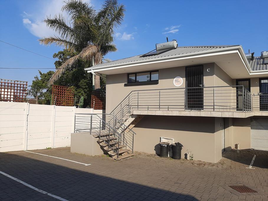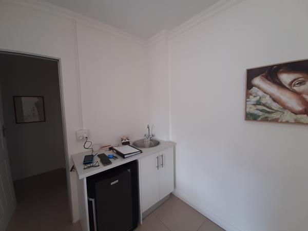 This immaculate office unit on the first floor of the building offers a reception/kitchenette/waiting area, one private office and a bathroom with toilet/basin/shower. There are outside stairs leading to a balcony and the office entrance is secured with a security gate. All the floors are tiled and the site has additional security by way of clear burglar bars on the windows, a remote controlled access gate, boundary walls and electric fence. The driveway and parking area is paved and there is a solar geyser and prepaid electricity. Monthly rental includes all utilities, except for prepaid electricity, alarm costs and wifi. The successful applicant may advertise on the access gate and a high traffic road.