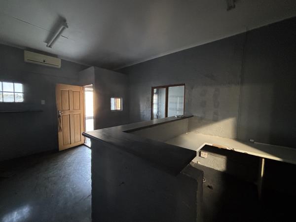 The office component comprises a welcoming reception area with counter, two ground-floor offices, and a mezzanine office, all of which are air-conditioned. Additional facilities include a kitchen, ablutions, and a shower, providing practicality and comfort for staff.