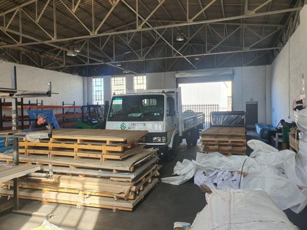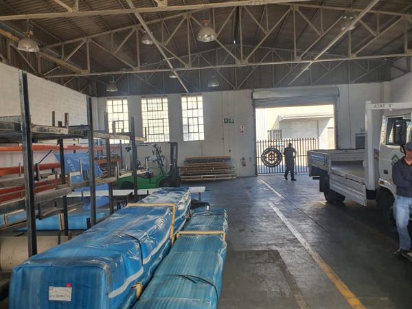 The premises include a large roller shutter door for efficient loading and offloading, complemented by good natural lighting throughout. A compact office component with a kitchenette and ablution facilities supports administrative and staff needs, while 3-phase power is available to accommodate a range of operational requirements.