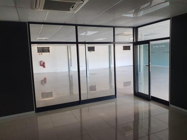 The property features a double-volume entrance lobby that creates a strong first impression and includes male, female, and disabled-access ablutions. Inside, a welcoming reception area leads to a mix of boardrooms, private offices, and open-plan work areas that can be configured to suit a range of business needs. A dedicated airconditioned server room and storeroom provide additional operational support.