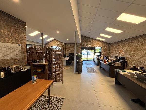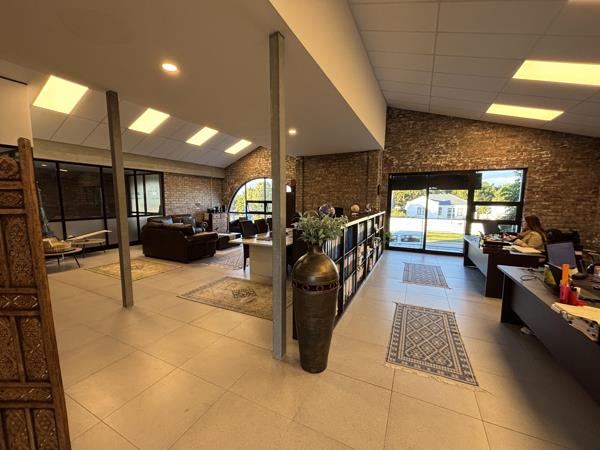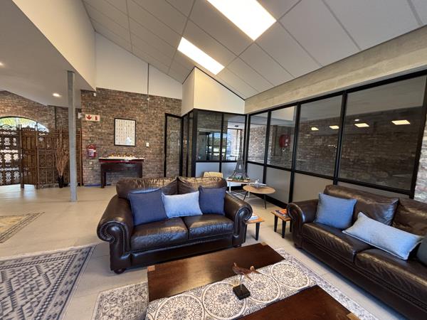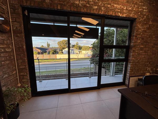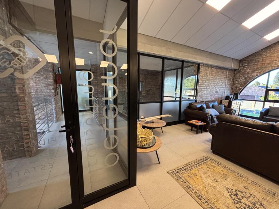 This 135sqm unit is located on the first floor and offers a beautiful open-plan layout. It features large floor tiles, ample natural light from three large windows, and a sliding door that opens onto a small patio. The office also includes a modern kitchenette, with separate shared male and female ablutions conveniently located next door.