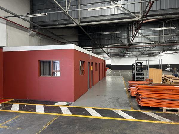 It features a large roller shutter door for convenient access, 3-phase power supply, and durable, high-quality flooring throughout the space. The unit includes three neat and functional offices, staff ablution facilities, and a practical layout designed to support efficient operations.