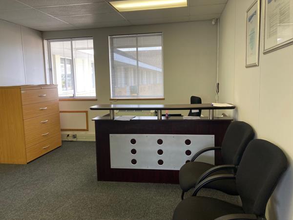 Comfort and efficiency are at the forefront of this workspace, with full air-conditioning and solar power ensuring a pleasant and energy-efficient setting. The premises are secured with 24-hour security, providing peace of mind for both staff and clients.