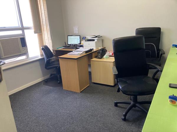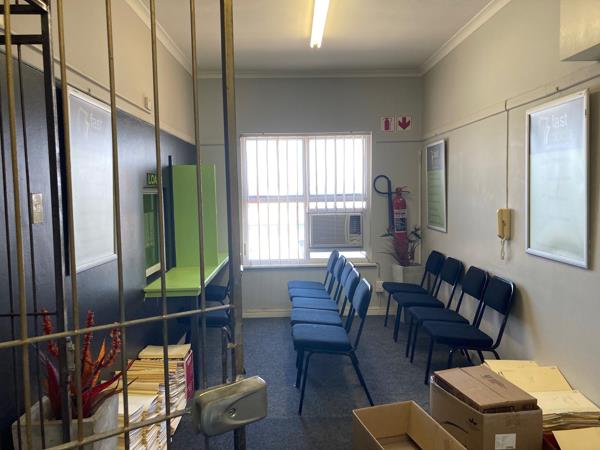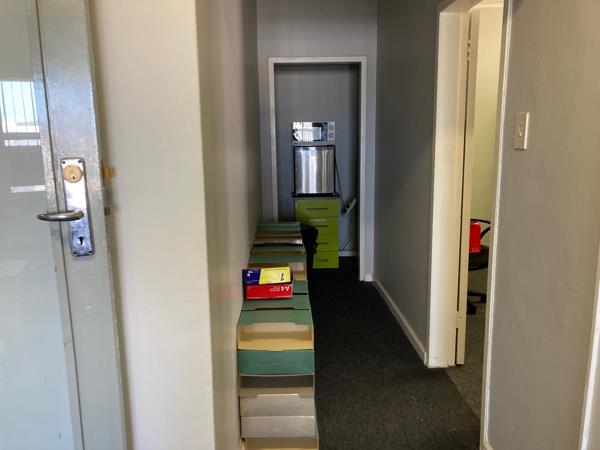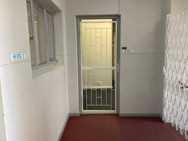 The 1st floor office space is available for rent in a highly secure building, perfect for businesses seeking a safe and productive environment. The premises offer a reception area and two private offices, kitchenette and ablutions. Ample parking available for staff and clients.