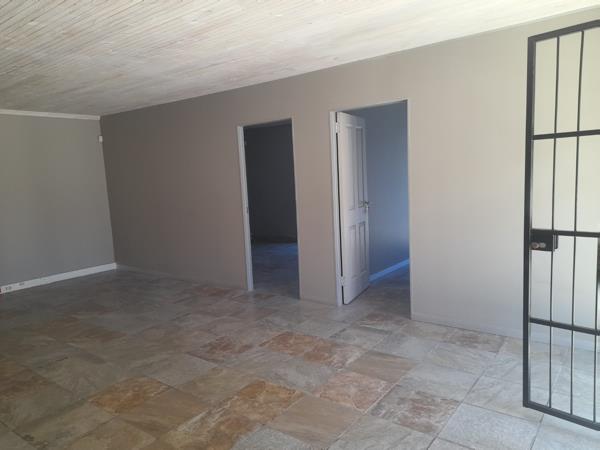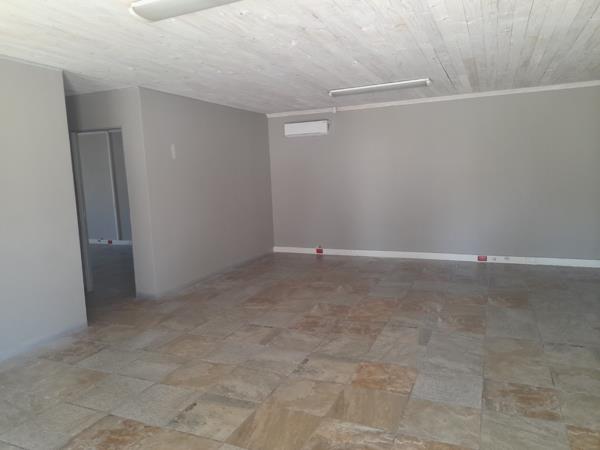 The secure building features burglar guards, safety gates, and an alarm system for peace of mind. Upon entering, you are welcomed into a spacious open-plan area suitable for reception and office operations. Two private offices lead off the main area, providing flexibility for meetings or management use.