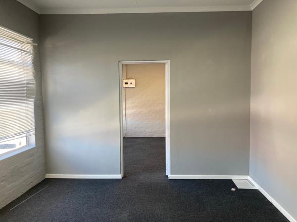 At the front, two generously sized inter-leading private offices overlook the street, each brightened by large windows that allow natural light to pour in. Toward the rear, a spacious open-plan area provides excellent versatilityperfect for a large office setup, training facility, or conference room. A passageway connects to a separate meeting room, kitchenette, and convenient his and hers ablutions.