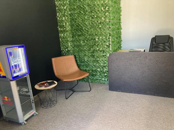 The space offers a welcoming reception area, an open-plan office, a boardroom and a private office, along with a kitchenette and ablutions. Secure parking available.