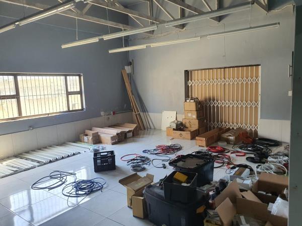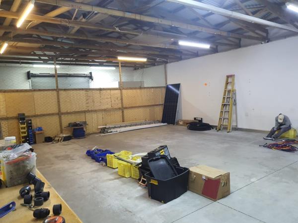 The adjoining warehouse features an industrial roller door and power-floated floors, offering efficient functionality for storage and operational needs. Additional kitchen and ablution facilities are provided within the warehouse for added convenience.