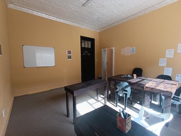 The property showcases timeless architectural features including high ceilings, wooden-framed windows, and a spacious front veranda that creates a welcoming and professional atmosphere. Its layout includes a variety of room sizes, easily adaptable to meet specific operational or spatial requirements.