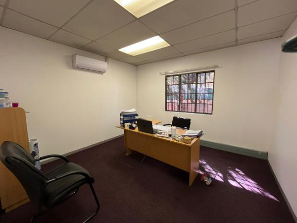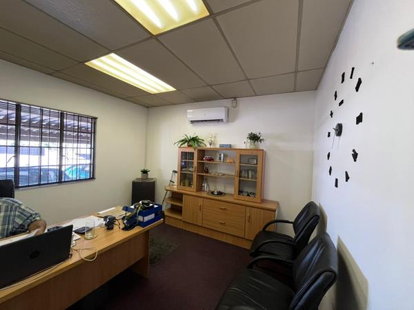 Warehouse space available with offices, a welcoming reception area, and a spacious warehouse. The unit offers three steel roller doors for easy loading and delivery. The reception area leads to multiple offices, creating a functional and professional workspace.