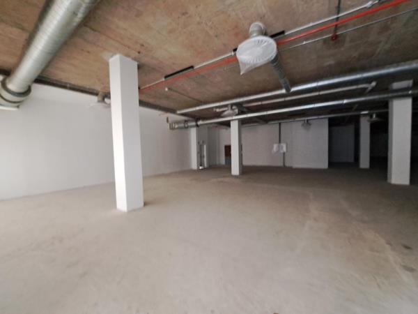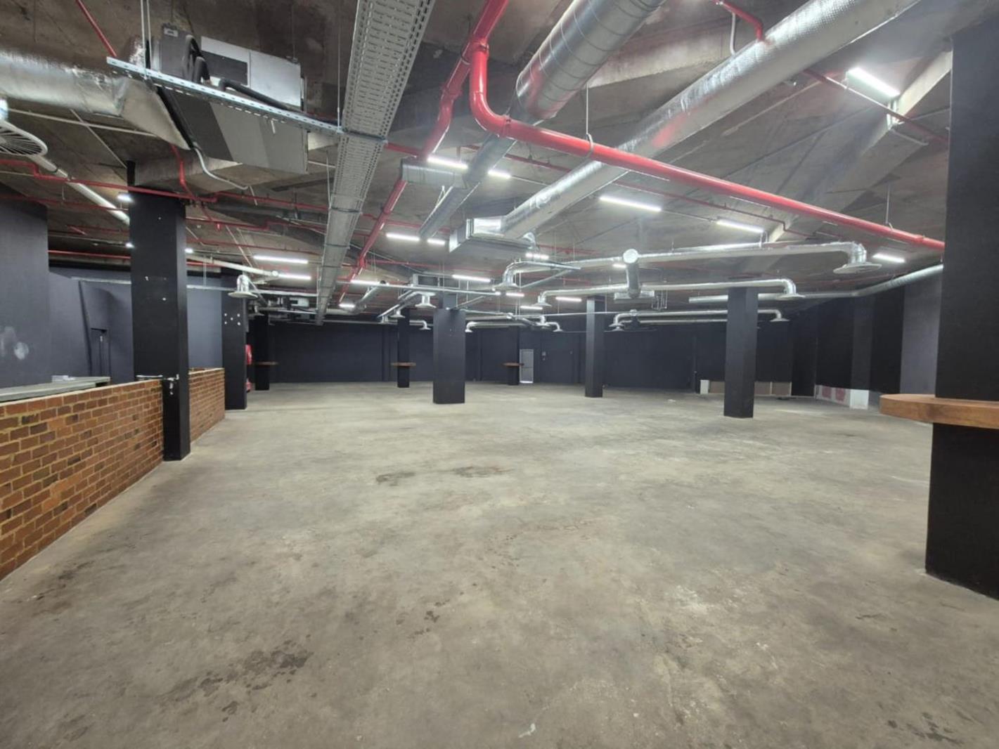 Large open plan space with a stage and central service counter. the space offers its own bathrooms and has the option to expand up to 1286m2 as well as an outside area available up to 300m2