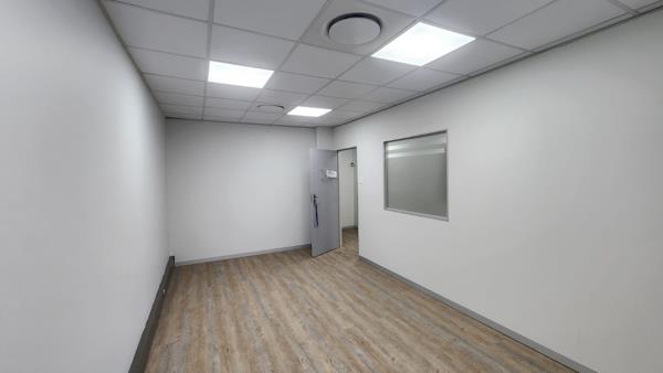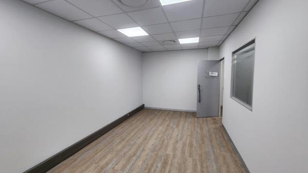 The office is sectioned into a communal reception area, 1 closed office and a communal kitchen accompanied by communal ablutions. The office features neat laminated flooring, air-conditioning, fibre connectivity and blinds.