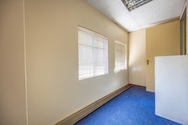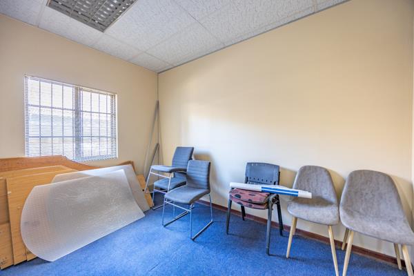 Comprehensive security is provided by 24-hour on-site guards, CCTV surveillance, and controlled access at all entry points. The park is further protected by an electric perimeter fence, dual booms, and roller shutters that are secured each evening. The office itself is fitted with an alarm system, Trellidor gate, burglar bars, and rear security door. Tenants also have access to a shared entertainment facility equipped with a braai area, TV, sound system, and catering essentials ideal for meetings, staff functions, or client events.