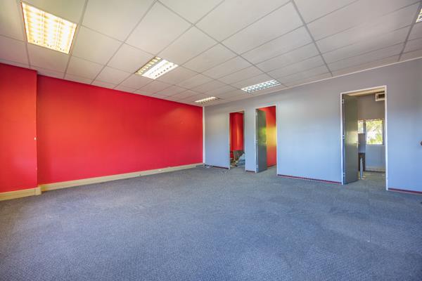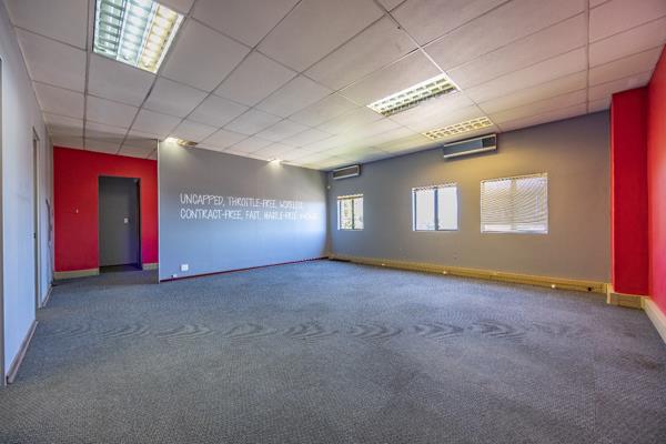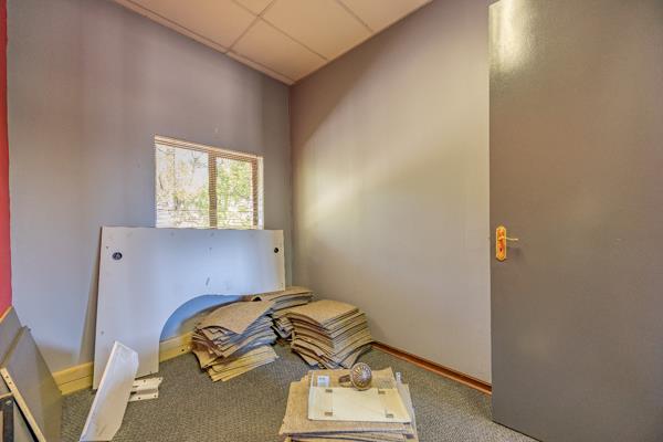 Safety and peace of mind are ensured through 24-hour on-site security, CCTV monitoring, and controlled access at all entry points. The office park is further protected by an electric fence, entry booms, and roller shutters that are secured each evening. The unit itself is equipped with an alarm system, Trellidor gate, and security gate at the rear door. Tenants also enjoy access to a shared entertainment area fitted with a built-in braai, TV, sound system, and catering facilities ideal for staff functions or business events.