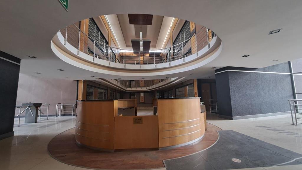 This standalone, three-storey office building is available to let in a secure office park within Eco Park Estate, Centurion. The property boasts a prominent corner location, offering excellent visibility and a total floor area of 5,853 m spread across three levels. Its layout features four distinct sections with open-plan configurations alongside closed offices for privacy, as well as balconies on the second and third floors. Accessibility is a priority, with wheelchair-friendly lift access, basement parking for 102 vehicles, 91 covered surface bays, and storage rooms in the basement. Additional amenities include a ground floor space suitable for an industrial kitchen to support a cafeteria (currently under revamp), a common garden with shared braai facilities adjacent to the building, and top-notch security with 24-hour access control to the business park.