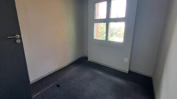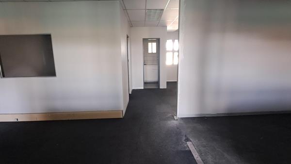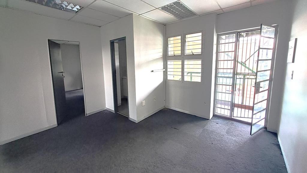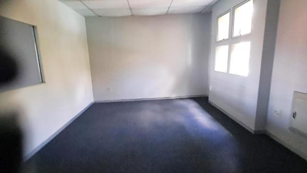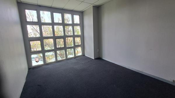 This office is currently configured as 4 closed offices 2 larger and 2 smaller, a reception area and a kitchen, as well as an open plan section running down the middle. One of the larger offices can serve as a boardroom. The total space on offer is 124.61 square meters. This office is situated on the upper floor with carpeted flooring throughout. Parking is well-catered for with two covered parking bays and two open parking bays included in the rental. The office block has shared bathrooms for all tenants on all the floors.