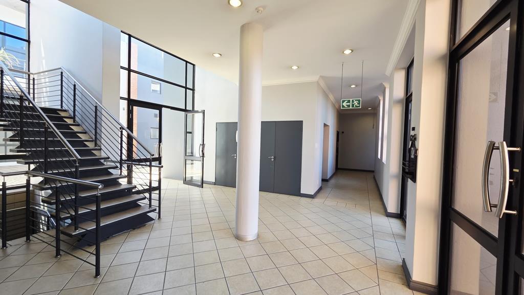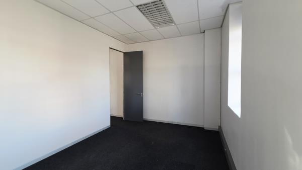 The building hosts a 160 square meter unit consisting out of a reception area, one closed office component, a large open plan work station, a dedicated kitchen area with ablutions. It features air conditioning units, neat carpet flooring, fibre ready connectivity and ample windows with blinds allowing a great amount of natural light to filter in.