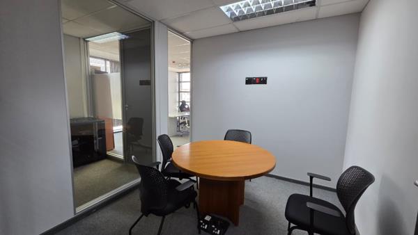 Highveld is a popular business hub located within the greater Centurion area. This first floor office space is situated within the multi-tenanted Eco Court Office Park based on Witch-Hazel Avenue in Eco Park Estate, Centurion. This corporate office space consists out of a spacious open-plan office area, with 2 closed offices. This modern office space features central air conditioning, neat carpet flooring, glass panel partitioning, windowed doors and several large windows with blinds which provide ample natural light as well as an open air office environment. This office building offers several communal areas which includes a kitchen along with an outside break-away area complete with seating for tenants and communal ablutions available on each floor. The office building has been equipped with elevator access, ready-to-go fibre connections and a back-up generator in case of power outages.
