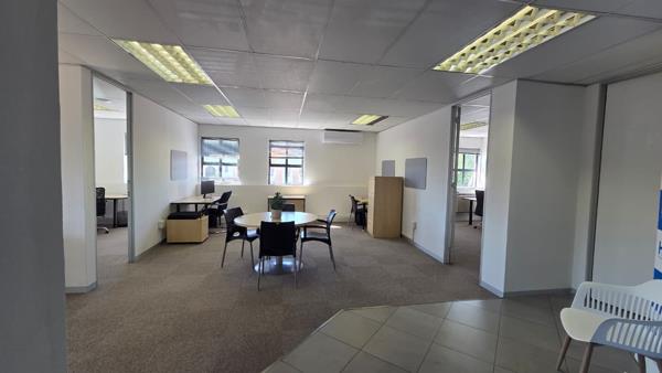 The Greens Office Park is a multi-tenanted, secure office park based on Charles de Gaulle Crescent within Highveld, Centurion. Highveld is a prime commercial business hub located within the bustling Centurion area. This neat B-grade 100 square meter office unit is situated within The Greens Office Park. This first floor office space consists of a reception area, 1 closed office area, an open-plan office area, a boardroom, a dedicated kitchen area, and 2 sets of ablutions. The office features central air conditioning, neat carpet flooring, modern glass panel partitioning, and large windows with blinds that allow for ample natural light. The office building has been equipped with ready to go fibre options.