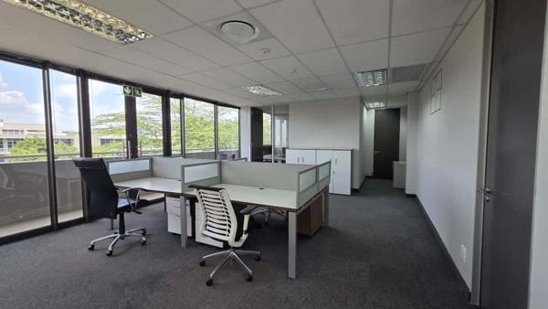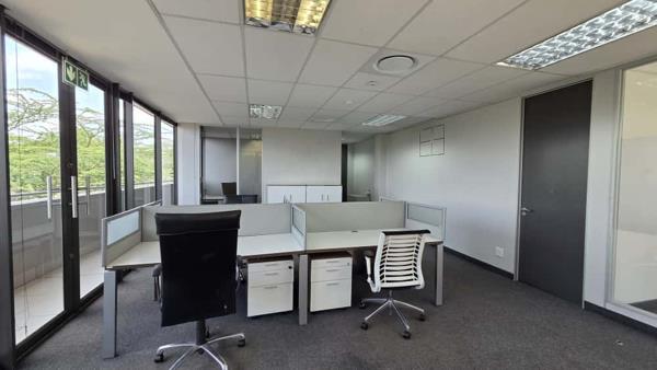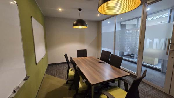 This fully serviced office offers an all-in-one package. The rental amount includes all services and furniture. The office comprises out of an open plan work area with one closed office. It features central air conditioning, neat carpet flooring and windows that allow for ample natural light. Tenants will have access to several communal areas such as boardrooms or meeting rooms which are subject to booking, a kitchen area and ablutions.