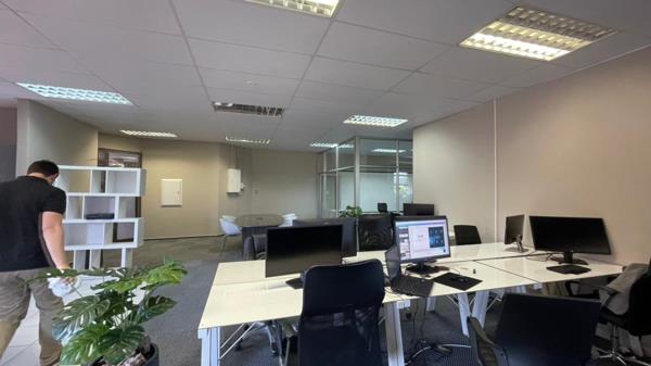 Highveld Office Forum is located within the well-established area of Centurion, situated at Witch-Hazel Avenue based in the booming suburb of Highveld. This Commercial Office Suite comprises out of a 183 square metre space consisting of a reception area, closed offices, an open plan working area, boardrooms to conduct general meetings, a modern kitchen and communal ablutions that are shared among other tenants. The office showcases neat carpet flooring, blinds, fibre connectivity, air-conditioning and big windows allowing ample light to brighten up the office space.