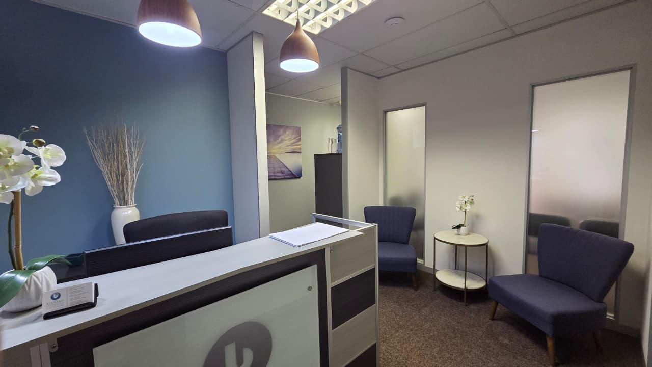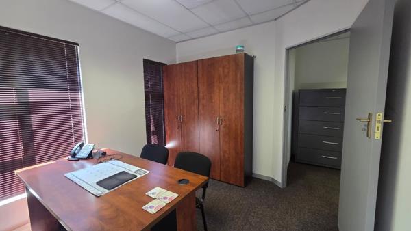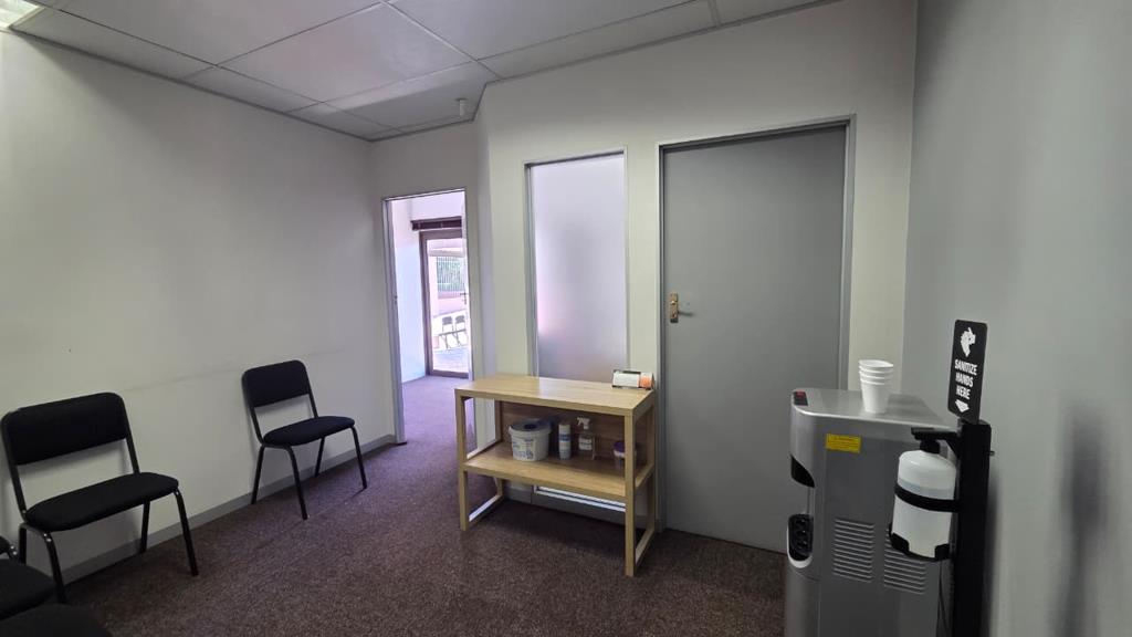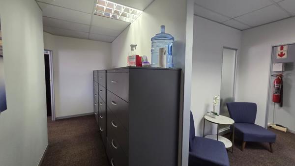 This modern office space is situated within a secure park based in the Route 21 Corporate park. This 89 square meter office unit consists of a reception area, closed offices, a boardroom, a dedicated kitchen area and communal ablutions. It features neat carpet flooring and windows with blinds that allow for ample natural light. This office unit is equipped with air-conditioning, ready to go fibre connectivity.