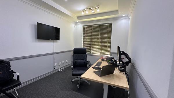 This modern office space is situated within a secure park based in the Route 21 Corporate park. This 159 square meter office unit consists of a reception area, closed offices, a boardroom, a dedicated kitchen area and communal ablutions. It features neat flooring and windows with blinds that allow for ample natural light. This office unit is equipped with air-conditioning, ready to go fibre connectivity. This modern space will be repainted for the next tenant.