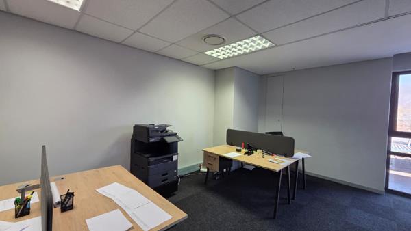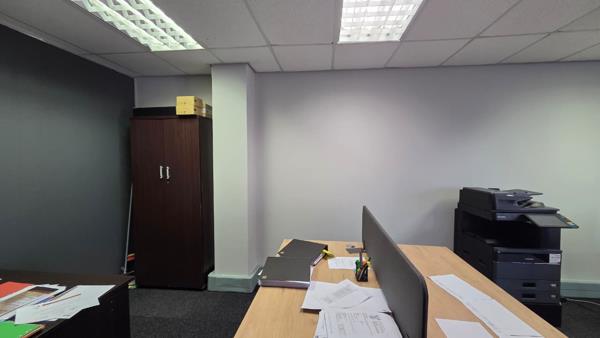 Comprising out of 123 square meters, this prime lettable area is partitioned into a reception area, one closed office component, 2 open plan working areas, a boardroom and a dedicated kitchenette with access to communal ablutions. It is equipped with neat carpet floors, air conditioning units, fibre installed connectivity and a great amount of sunlight to enter the unit.