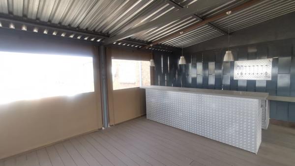 The available warehouse features a spacious open-plan floor suitable for manufacturing or storage, with two roller shutter doors for easy loading and unloading. The unit includes a mezzanine floor for additional space, 6 meters height to eaves,3-phase power supply. Inside, there are ablution facilities, a kitchen area, reception and office spaces, and a modern entertainment area with a built-in braai and bar. The property also provides a paved yard for truck access.