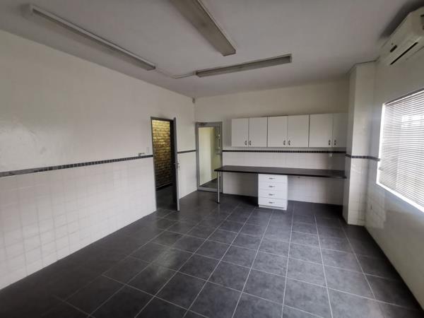 Male and female restrooms, kitchen areas, air conditioning, and a reception area. The area is free from loadshedding.