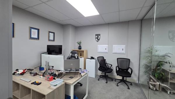 Midlands Office Park is ideally located on Mount Quaray Street, based within the well-established business hub of Midlands Estate in the heart of Centurion. This commercial unit comprises out of a reception, private offices, an open-plan office and a small kitchen area with access to communal ablutions. It is equipped with air conditioning units, fibre installed connectivity. This commercial unit has modern finishes such as tiled flooring and large windows with blinds to allow natural light to filter in.