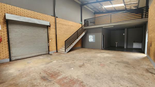 This 175m2 industrial unit is located within the secure Westhills Business Estate on Rain Street, Centurion. The unit comprises a warehouse and office component, making it ideal for light industrial or warehousing operations. The warehouse offers an open plan workspace with a mezzanine floor, and an 8 meter height to eaves. The unit is equipped with 63 Amps three phase power, one roller shutter door, a kitchen area, ablution facilities, and good ventilation. The office component includes a reception area and one private office with tiled flooring and large windows allowing ample natural light. Westhills Business Estate is fully secure, featuring access controlled boom gates, an alarm system, on-site security, and perimeter fencing. A paved yard allows for easy interlink truck access, with ample open parking available for tenants and visitors. The unit enjoys excellent access to public transport, nearby amenities at Forest Hill Mall and Celtis Ridge Shopping Centre, and easy connectivity via the R55 to the N14 highway.
