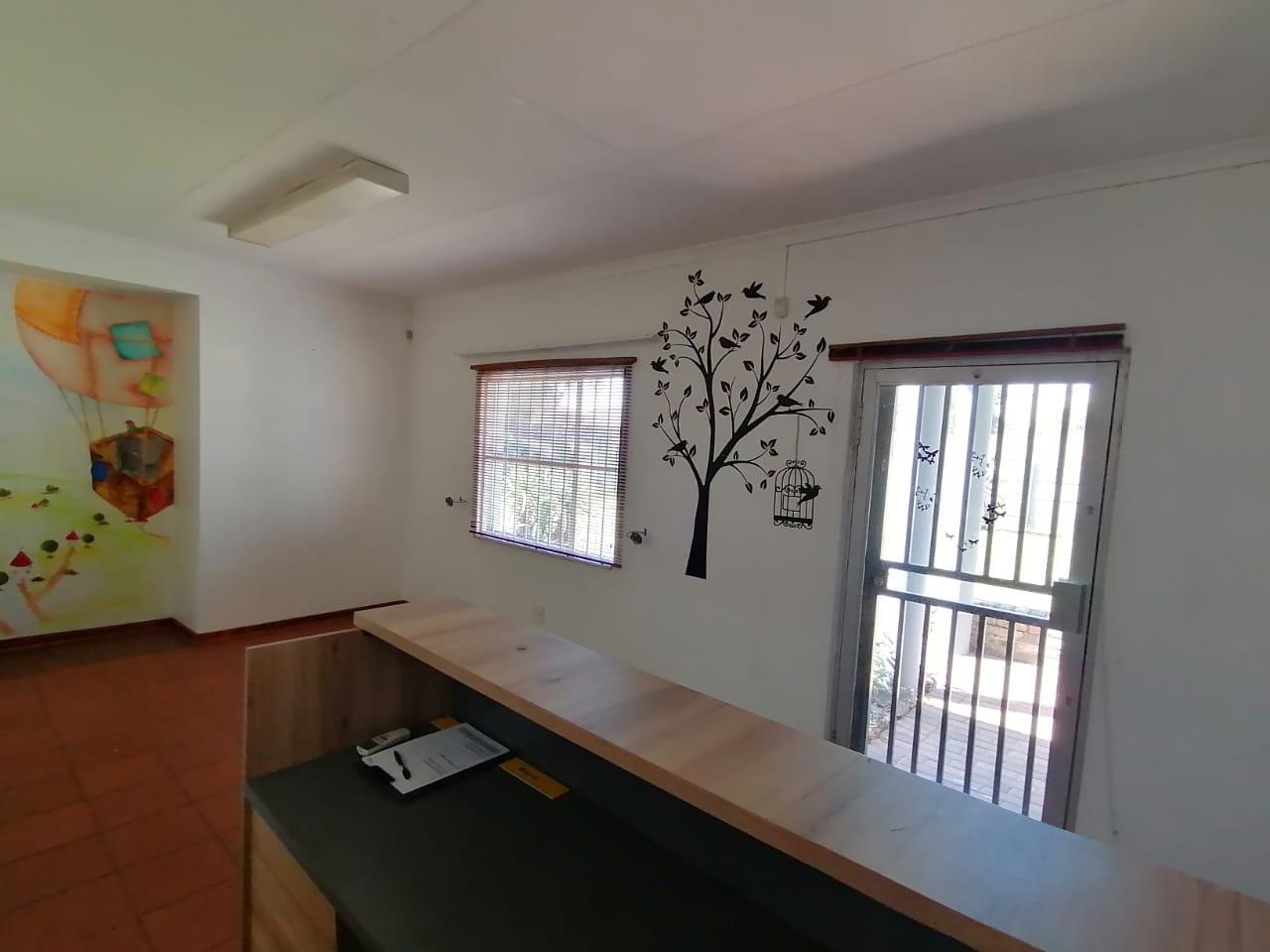 Located in the established area of Valhalla, Centurion, this commercial rental offers a strategic position within a vibrant South African city. This 67sqm commercial space presents a versatile layout, ideal for a range of business operations. The interior features several distinct areas, including a bright main reception or office space with a built-in counter, benefiting from natural light through a window and glass door. Multiple internal doors suggest segmented offices or consultation rooms, providing privacy and functional divisions within the unit.
