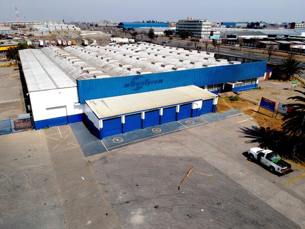 Large warehouse measuring approx 4834m2 under roof with approx 4771m2 yard space to let in Alrode. This property has a large street facing entrance with large parking area, currently set up for a tyre fitment centre with multiple roller shutter doors t the front, loading dock area and offices. The balance of the warehouse is made up of 4 sections which can be opened up to create a large open plan warehouse floor, there is great natural lighting throughout and good height to the eaves of approx 4,2m to the lowest points and approx 6,3m to the highest.