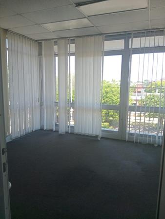 Discover an exceptional commercial rental opportunity in the secure Kleinfontein estate, Benoni. This versatile property offers a substantial 380.00 sqm of floor space, designed to accommodate a range of business needs. The interior boasts abundant natural light, flowing through large windows and a striking multi-level atrium with glass walls and sleek metal railings, creating an inviting and dynamic work environment.