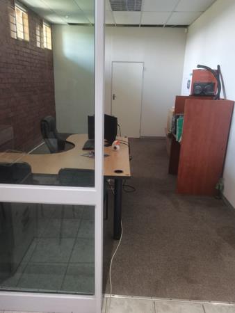 Discover a versatile commercial rental opportunity spanning 777.00 sqm of floor space within the secure Kleinfontein estate in Benoni, South Africa. This expansive property, set on a 994.00 sqm erf, offers significant potential for businesses seeking a adaptable environment. The layout currently features a welcoming reception area with a dedicated desk, complemented by multiple office spaces, some separated by modern glass partitions, providing both privacy and an open feel. Character is added through prominent exposed red brick walls and durable tiled flooring throughout much of the premises, with natural light enhancing the interior.