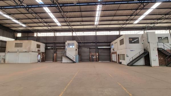 Now available to let in Hughes, Boksburg, is a spacious industrial warehouse measuring 6,561m2, positioned for maximum visibility along the highway and offering direct access to key transport routes. This property is well-suited for businesses that require both operational efficiency and a strong corporate presence. The warehouse is divided into two large sections, providing flexibility for various industrial uses such as logistics, distribution, or manufacturing. With impressive height, ample natural light, and 15 on-grade roller shutter doors, the space ensures smooth flow of goods and vehicles. Dedicated wash bays and a generous yard area further support heavy-duty operation. Complementing the warehouse is a substantial office component that creates a professional environment for staff and clients alike. The offices include a welcoming reception area, well-presented showrooms, open-plan and private offices, multiple boardrooms, kitchens, and staff ablution facilities, making the building fully functional as both a workspace and operational hub. This property delivers a rare combination of visibility, accessibility, and practicality in one of Boksburgs most strategic industrial nodes.