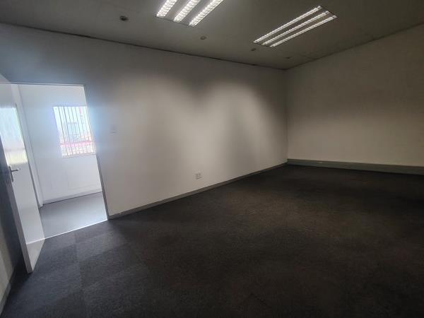 This 276m2 warehouse with integrated office space in Knightsgate Industrial Park provides a secure and versatile solution for light manufacturing, storage, or distribution. With direct access to Refinery Road and quick links to the N3 and M2, it supports smooth logistics operations. The warehouse offers six-metre height to the eaves, a 4.5-metre roller shutter door, ample natural light, a kitchenette, and a unisex bathroom, supported by a 60 Amp three-phase power supply. The office component includes a reception area, open-plan workspace, storage room, kitchenette, and bathrooms, with additional mezzanine offices for flexibility. The park features 24-hour security, controlled access, electric fencing, and generous truck maneuvering space.