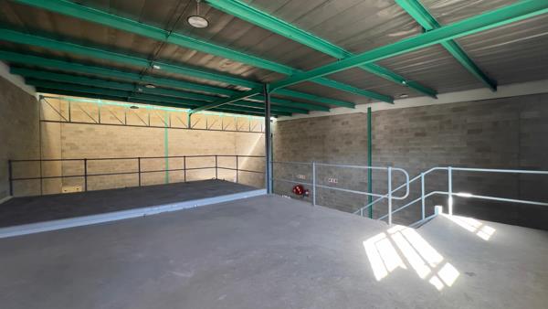 This 265.68m2 warehouse in Driehoek is available immediately at R18,066.20 per month (Deposit: R54,198.70 undeposit option available). The space includes a 194.35m2 warehouse floor, a 36.28m2 mezzanine, and a 39.58m2 large open-plan office.