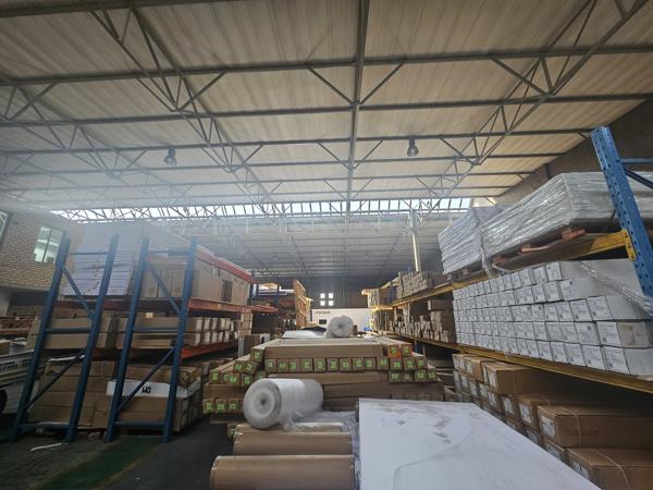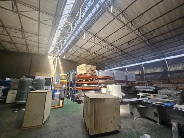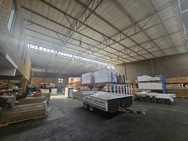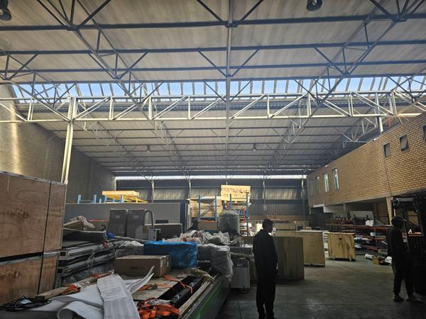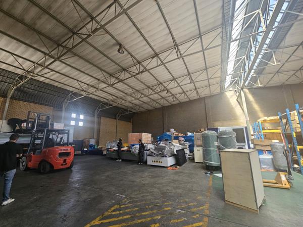 A 1,414sqm industrial unit in Meadowdale offers 3-phase power, 1,168sqm warehouse space, and 246sqm of offices with kitchenette and bathrooms. Features include roller shutter doors, truck access, and proximity to R21/R24 highways and O.R. Tambo International Airport.