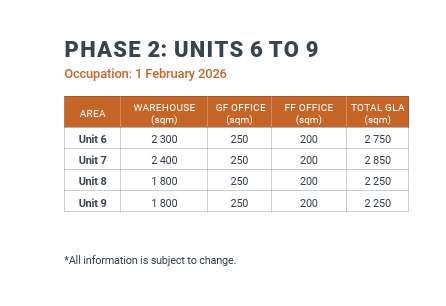 This is a future-fit space designed for ambitious businesses. Early access will be granted from October 2025 to allow for setup.