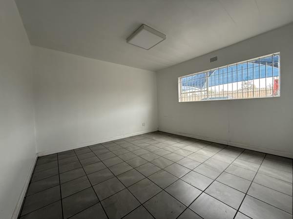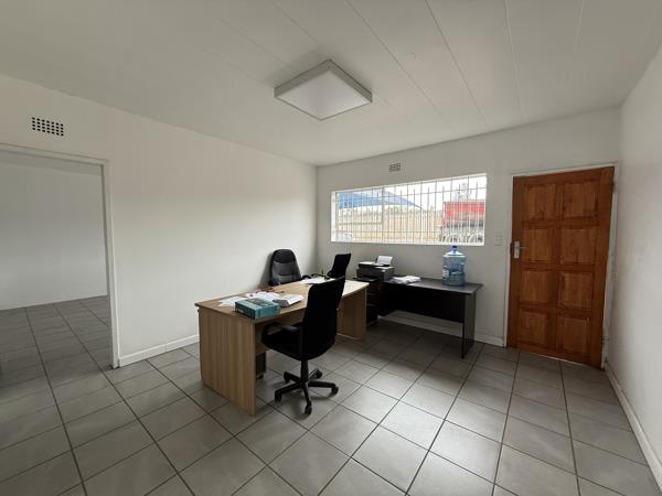 The unit features a neat reception and waiting area, an executive office, kitchenette, and separate male and female bathrooms. Additional staff amenities include ablution and shower facilities, plus a canteen with its own kitchenette. Shade-net parking is available for tenants and visitors.