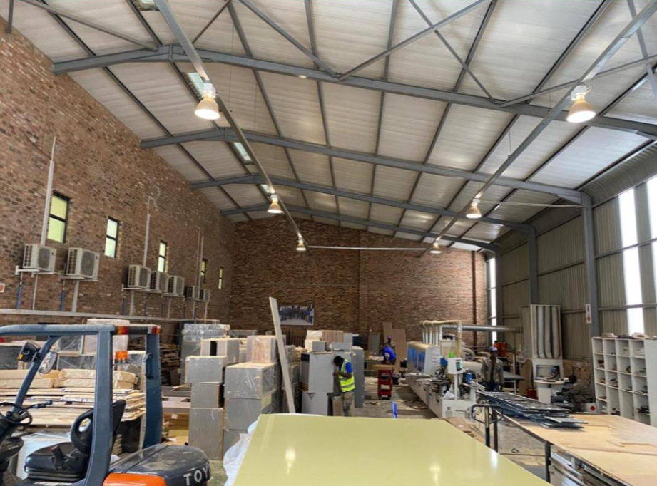 The office component includes a welcoming reception area, open-plan offices, a boardroom, individual offices, and male and female restrooms and kitchens. Ample secure parking is available for staff and visitors. The property boasts convenient access to O.R. Tambo International Airport and major highways such as the N3, R21, and R24, enhancing its appeal for businesses looking for strategic connectivity.