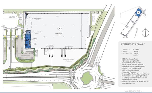 The precinct offers individual tenant signage, 24-hour security, controlled gatehouse access, a high perimeter electric fence, and a dedicated bus stop, creating streamlined access for staff and visitors. Dock areas, canopies and service yards are positioned along the western boundary to optimise flow and maintain a clean interface with the surrounding area. The development is also designed to support photovoltaic installations, offering long term operational savings and sustainability.