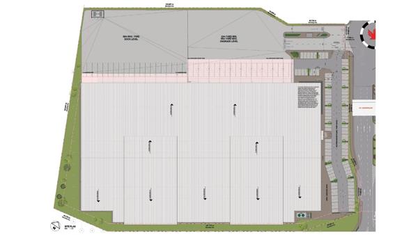 This brand-new industrial warehouse, currently under construction and available from 01 August 2026, offers a total floor space of 18,662m2, making it an ideal solution for large-scale logistics, distribution, or manufacturing operations. The facility boasts a generous 17,621m2 of high-volume warehouse space, designed to accommodate modern operational needs with efficiency and flexibility. Featuring multiple roller shutter doors and dock levelers, the warehouse ensures smooth and streamlined goods handling for both incoming and outgoing logistics.