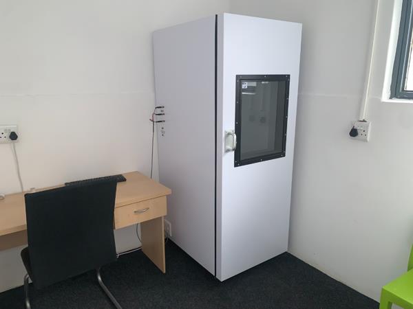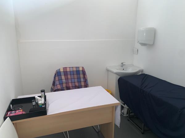 The versatile floor plan is well-suited for a range of businesses, from medical practices requiring dedicated consultation and examination rooms (complete with a sink and examination bed) to professional services needing individual offices and a soundproof booth for focused work or calls. A compact kitchenette/utility area provides convenience, while two well-appointed bathrooms ensure comfort for staff and clients. The space is designed for immediate occupancy, allowing businesses to establish their presence efficiently.