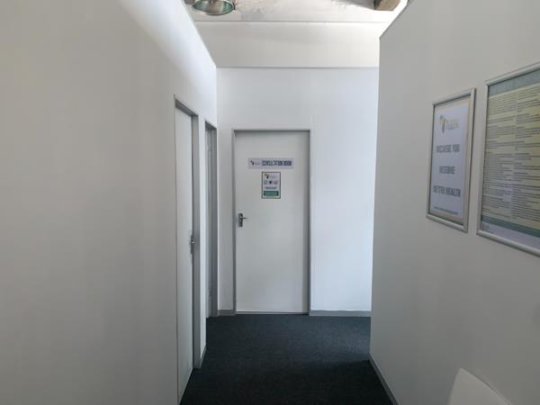 This modern 73 square meter commercial space, located in the bustling hub of Isando, Kempton Park, offers a highly adaptable environment for various business needs. The layout includes a welcoming reception and waiting area, leading to several partitioned rooms ideal for private offices, consultation rooms, or specialized functions.