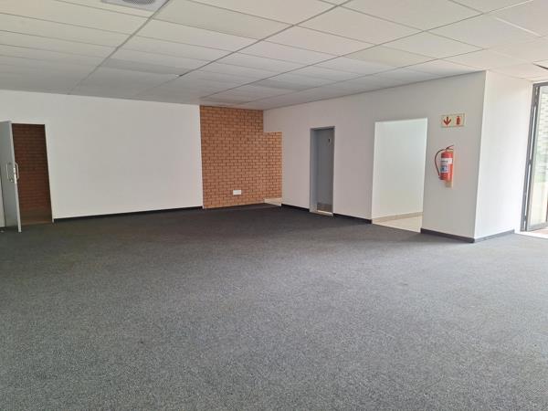 Upon entry, you are welcomed by a neat open-plan reception area, well-configured office space, a separate kitchen, and ablution facilities, making this unit both functional and professional.
